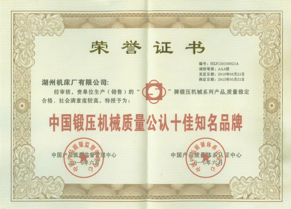 湖州市科学技术进步奖三等奖(HJY27数控单动薄板冲压液压机)