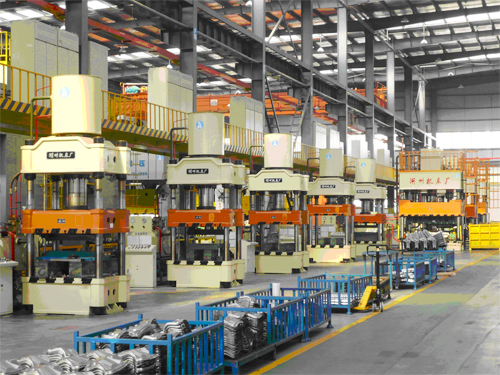 若液压机用于落料、冲裁等工艺,可加装冲裁缓冲装置,以消除或减轻材料冲断瞬间的冲击和噪⾳。